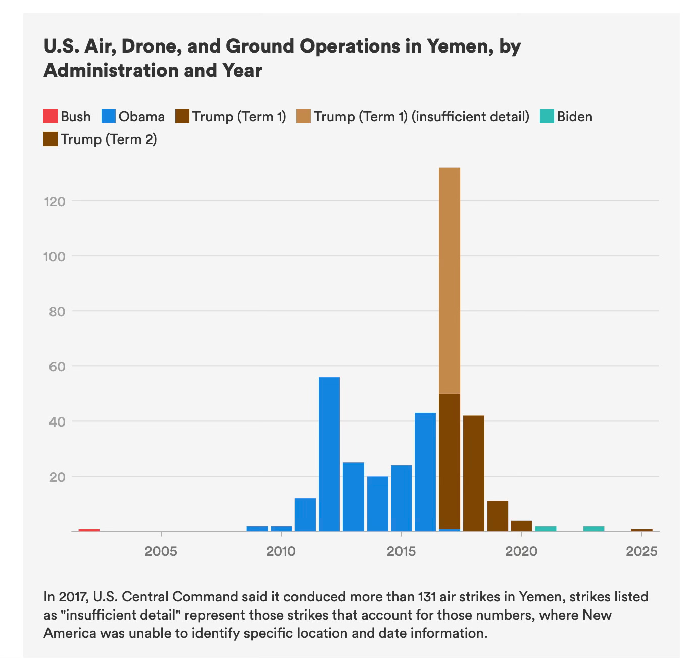 There have been 529 air strikes since his inauguration in January 2025, as compared with 555 over the four years of the Biden administration.